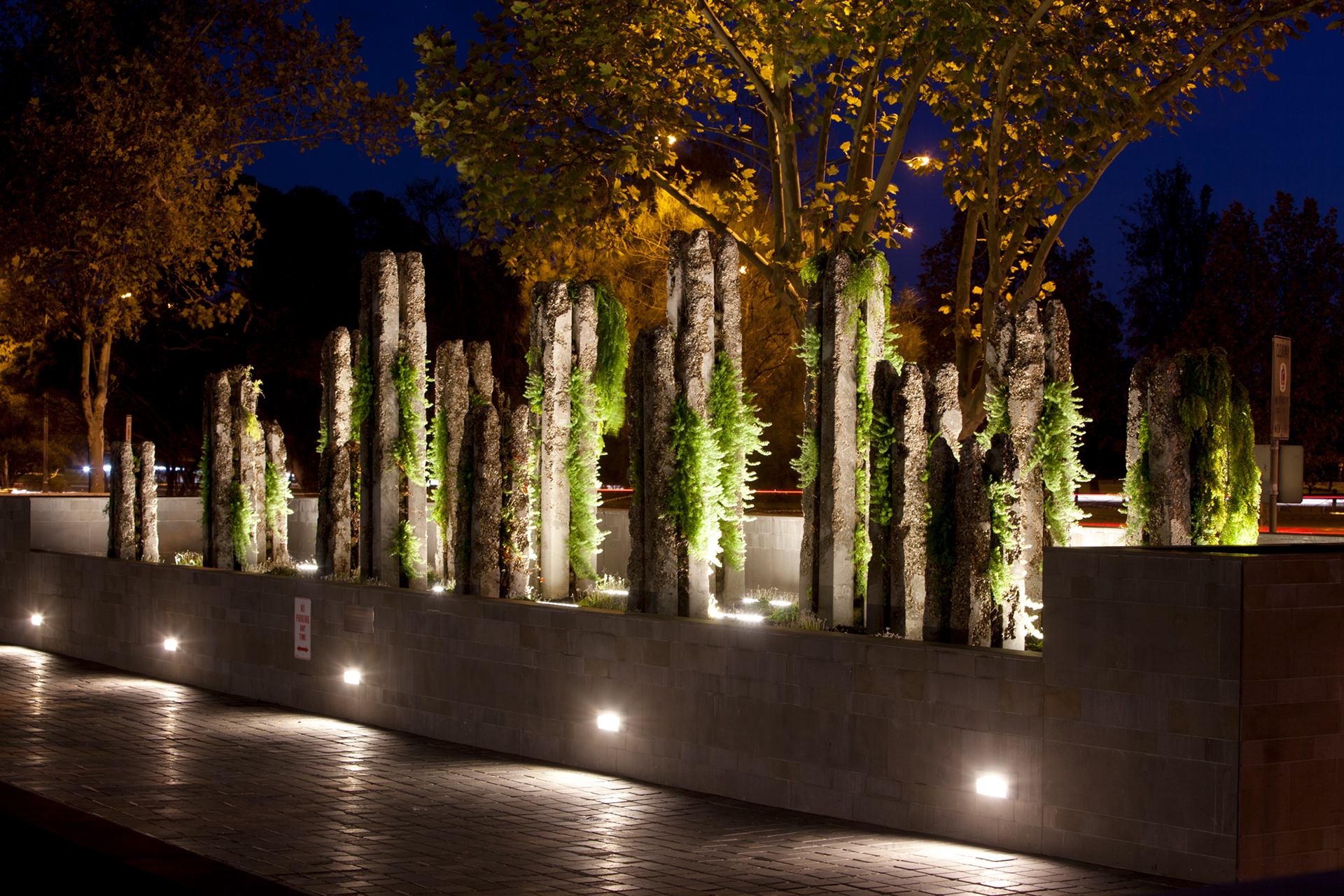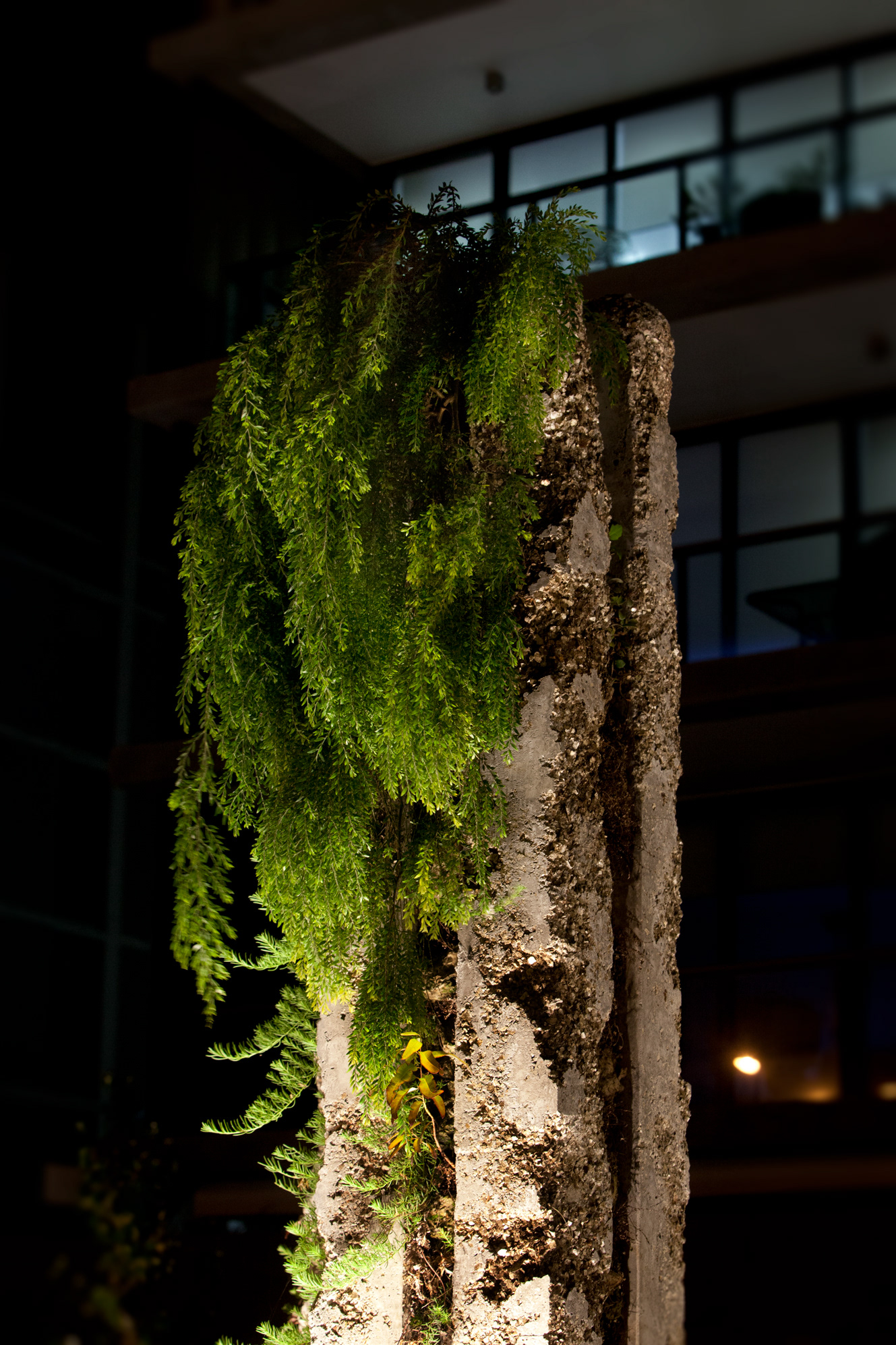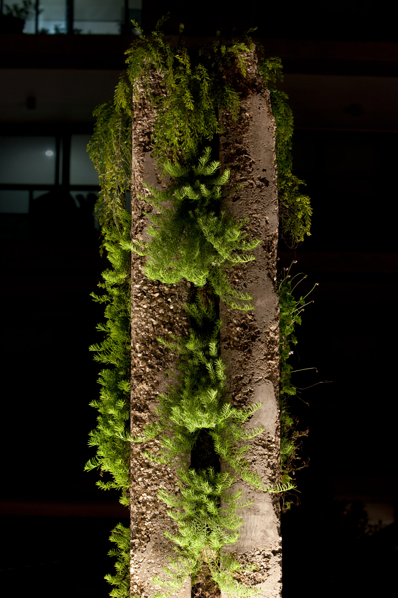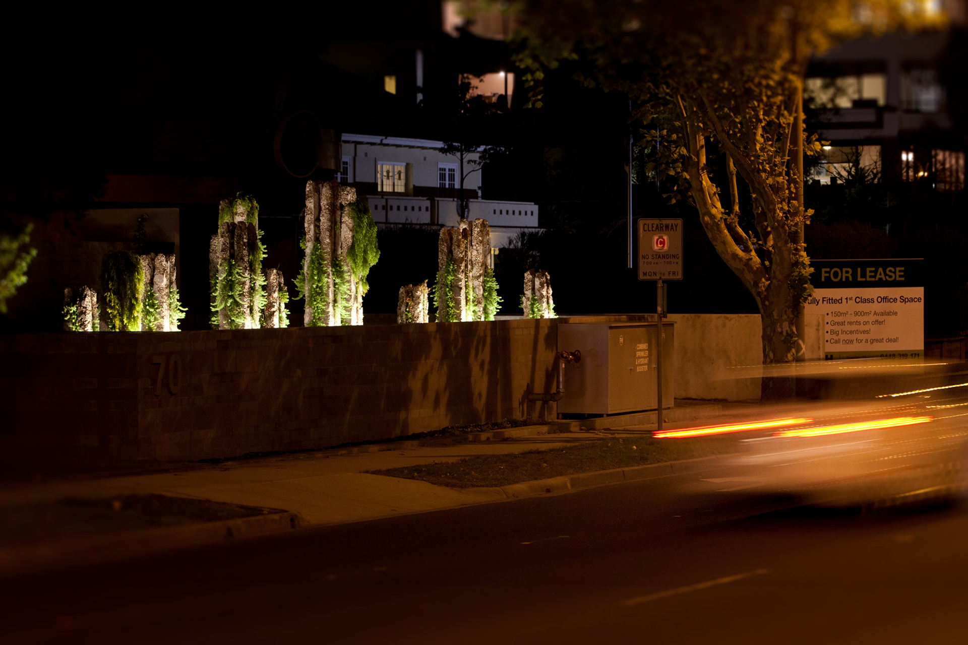 Commissioned sculptural work sited at 70 Queens Road, Melbourne and consisting of sixteen concrete and vermiculite columns each inhabited by a selection of species native to Melbourne and surrounds.