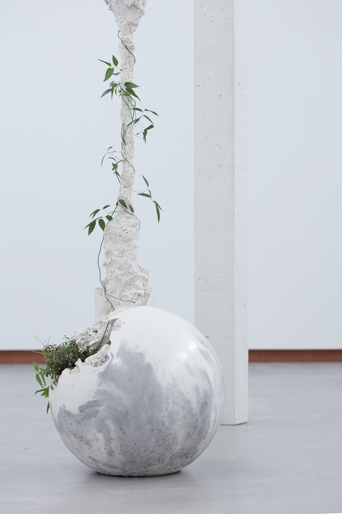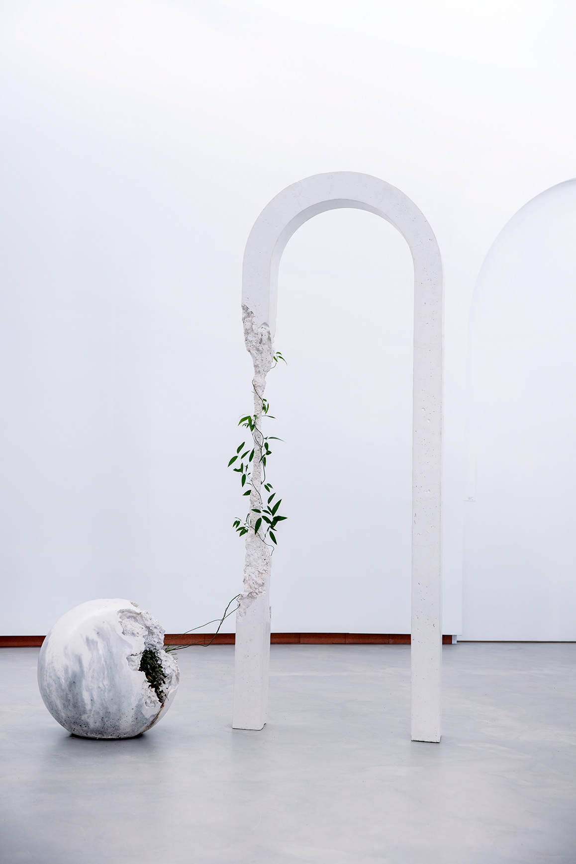 Falsework is both a reading of the architectural space of the gallery and a reflection on the tenuity of our existence.