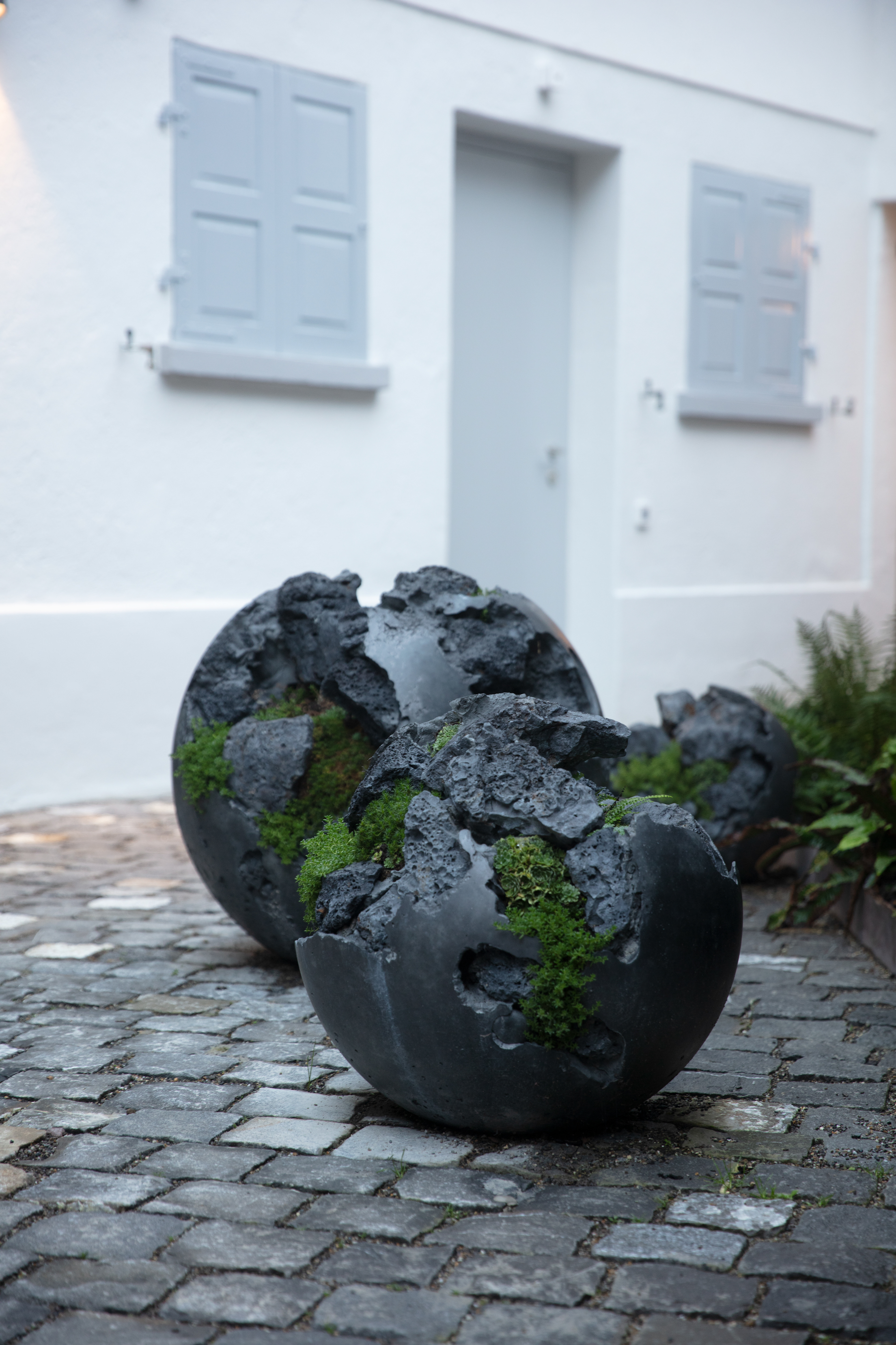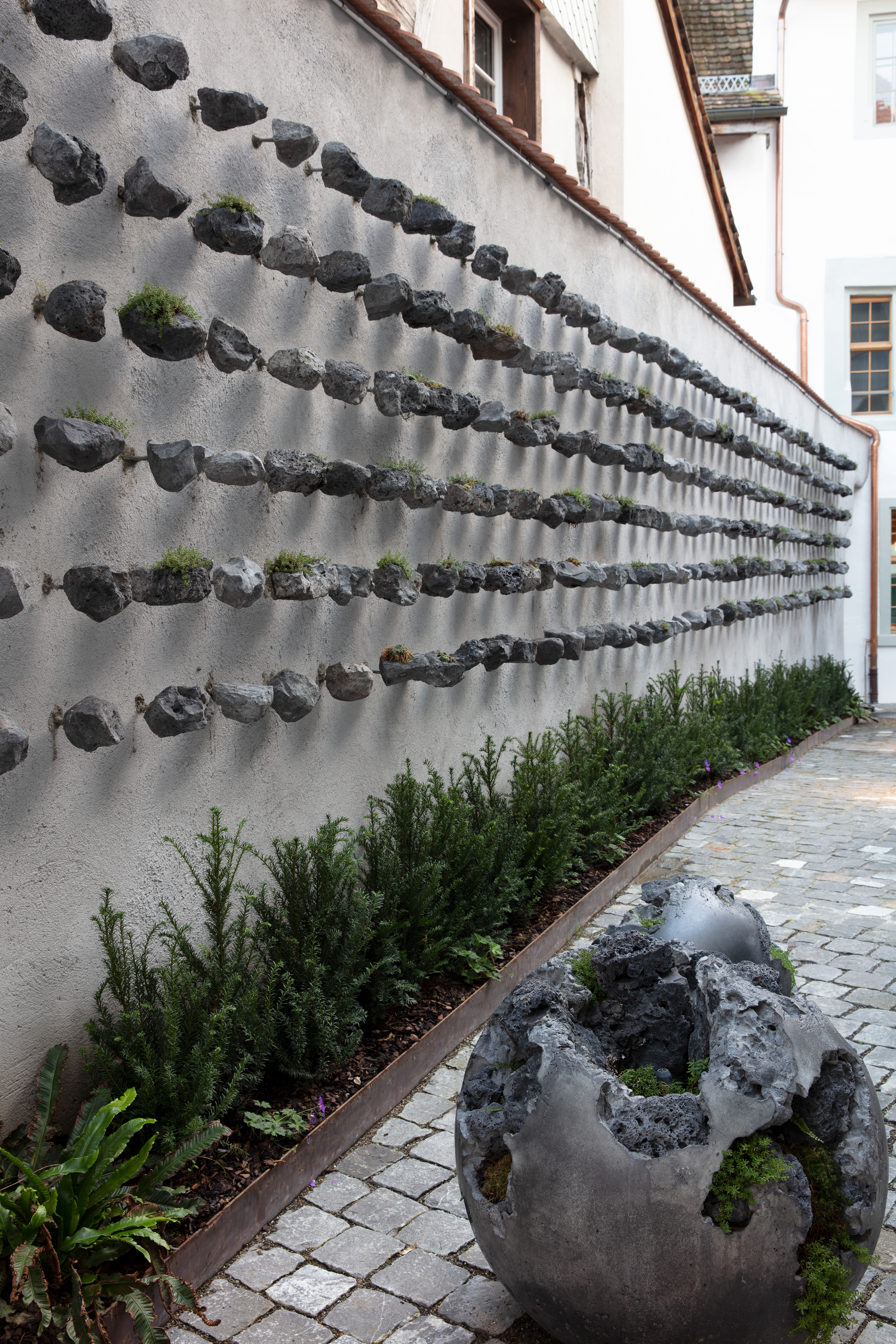 Stone in Three Phases 2022 is a sculpture garden created in the innerhof of the Kulturhaus Obere Stube in the town of Stein am Rhein, Switzerland.  It consists of three different though related sculptural elements: Stone Field (Stein am Rhein), Remainders (Stein am Rhein) and Rock Suspension (Stein am Rhein). The principal sculptural material is eclag, sourced from a steelworks in Switzerland. The works emulate the ancient stone walls found around the town, which provide habitat for local plant and animal species.